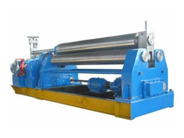The plate rolling machine adopts a three-kun symmetrical structure, with the upper roller symmetrically positioned in the center of the two lower rollers for vertical lifting motion achieved through screw and nut transmission and worm drive. The two lower rollers rotate to provide torque for sheet rolling, meshing via gears. This machine tool boasts a compact design that is easy to operate and maintain, while also capable of pre-bending.